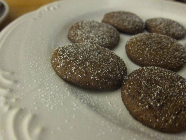 I turned to one of my favorite blogs, smitten kitchen, and there just *happened* to be a new post for ginger snaps that Deb had posted just days earlier. I pretty much followed her recipe, as I was intrigued by her use of white pepper. I decided to splurge and buy some. From what I can tell, many people use white instead of black pepper for aesthetic reasons (for example, in a white cream sauce), but a few sites pointed out that white pepper is milder. According to Mountain Rose Herbs, white, black and green pepper all come from the same plant and you get white pepper when the berry is picked fully ripe – did not know that! I think it did make a difference – and besides, the thought of using black pepper in cookies doesn’t really feel right.